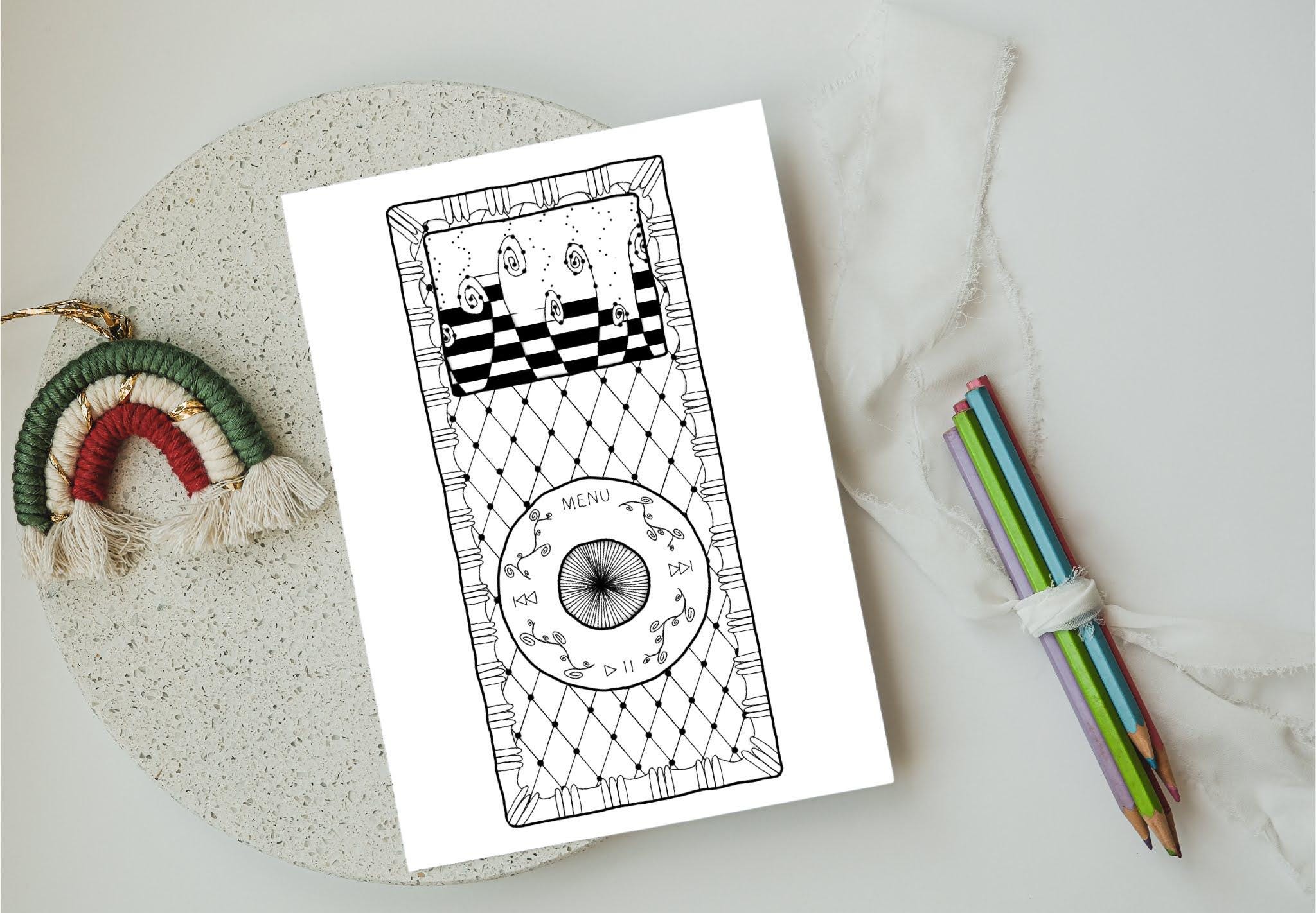 Unleash your creativity with this original Zentangle-inspired coloring page featuring a nostalgic MP3 player in full play mode. Designed with intricate patterns and flowing lines, this printable artwork offers a relaxing and engaging coloring experience for adults and teens alike. Perfect for music lovers, retro enthusiasts, and fans of mindful art, this digital download adds a unique blend of vintage vibes and meditative design to your coloring collection. Ideal for printing at home and enjoying with your favorite coloring tools.