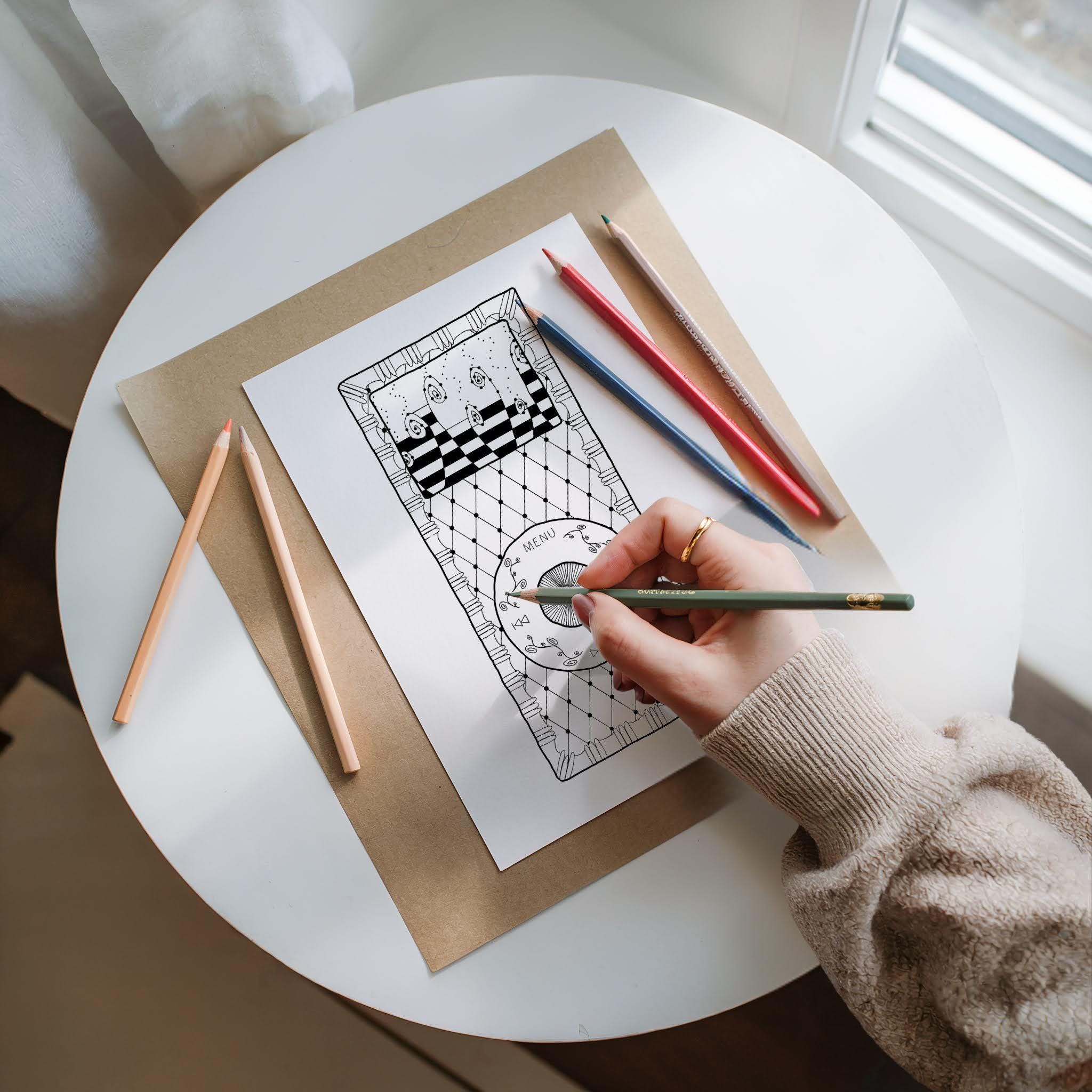 Heavyweight paper (32 lb or 80 gsm) – smooth surface for gel pens or colored pencils